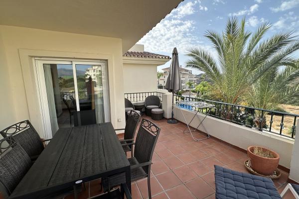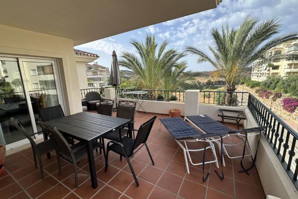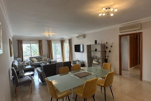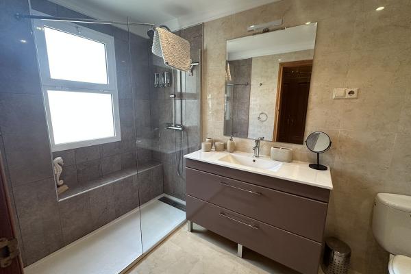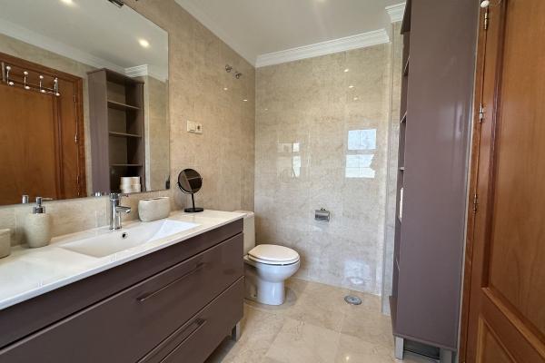 La propiedad destaca por su amplio salón-comedor de 45 m², donde disfrutarás de momentos inolvidables. La cocina y los baños son nuevos, y el dormitorio principal cuenta con un vestidor y armarios empotrados. Además, la gran terraza envolvente te permitirá disfrutar de vistas impresionantes a los campos de golf y al mar.