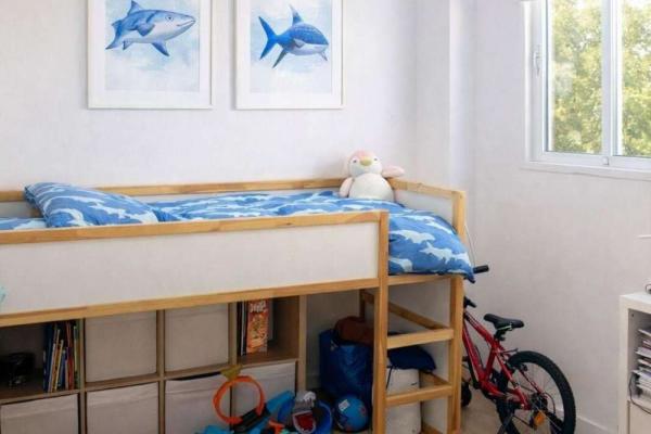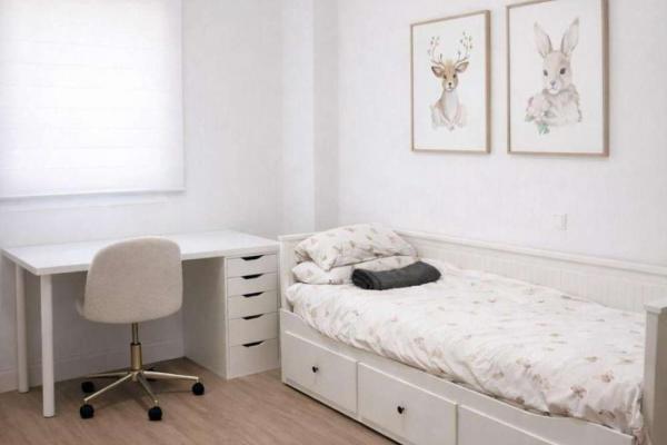 El piso cuenta con tres amplios dormitorios con armarios empotrados, perfectos para toda la familia. Además, dispone de dos baños completos, uno de ellos en suite, garantizando comodidad y privacidad. Las dos terrazas privadas, con una superficie total aproximada de 35 m², son ideales para disfrutar de agradables vistas a los jardines comunitarios, ya sea para un comedor exterior, zona de relax o área infantil.