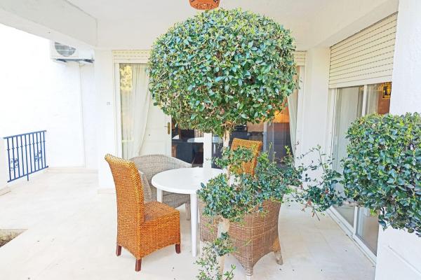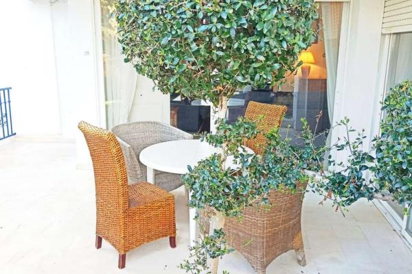 El impresionante jardín privado, adornado con palmeras y plantas tropicales, crea un ambiente exclusivo que evoca la esencia de una casa de campo. Este espacio exterior es ideal para disfrutar de momentos de paz y desconexión. Además, el apartamento incluye armarios empotrados, un baño en suite y un aseo de invitados, lo que añade comodidad a tu día a día.