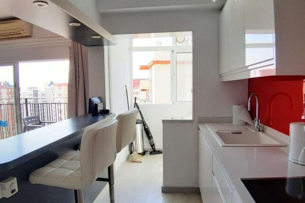 Descubre este encantador apartamento en la octava planta, ubicado en una de las zonas más prácticas de Fuengirola, justo al lado de la Plaza de Toros. Este luminoso hogar cuenta con 78 m² construidos y 66 m² útiles, distribuidos en 2 acogedores dormitorios y un baño completo. La cocina americana, totalmente equipada, se integra perfectamente con el salón-comedor, creando un espacio ideal para disfrutar en familia o con amigos.